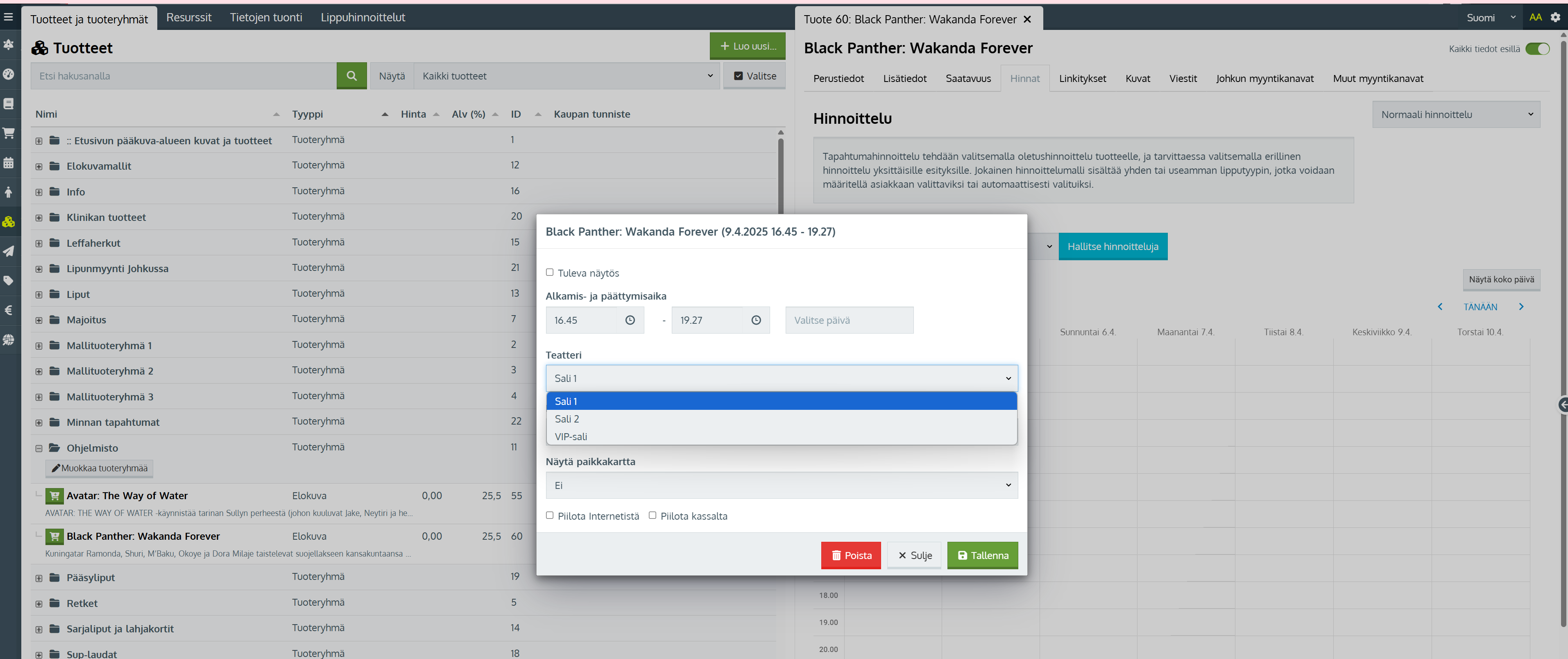 4. Valmis! Nyt voit luoda näytösaikoja tähän saliin