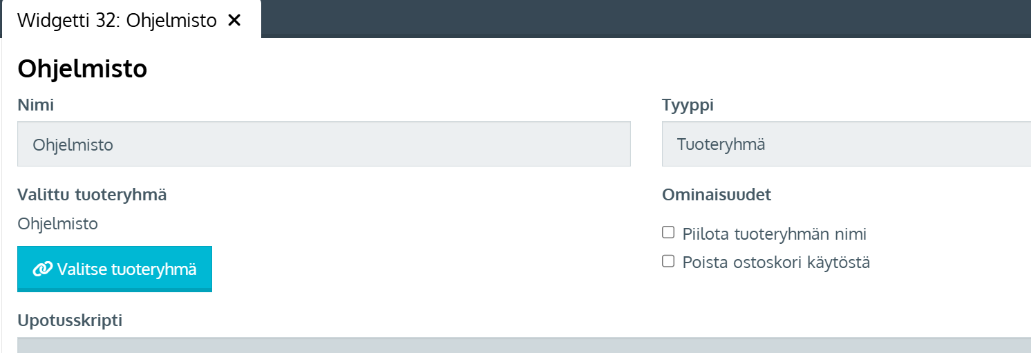 - Luo Kauppapaikan asetusten Widgetit-osiossa tuoteryhmäwidget Tuoteryhmäwidgetin luominen