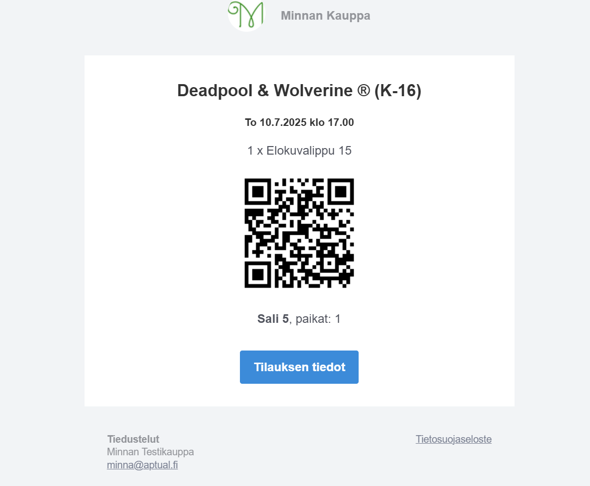 Johkun liput lähtevät asiakkaalle Lippu-nimisenä sähköpostiviestinä. Lippu koodeineen (mobiililippu) on viestin sisältönä, ei siis liitetiedosto.