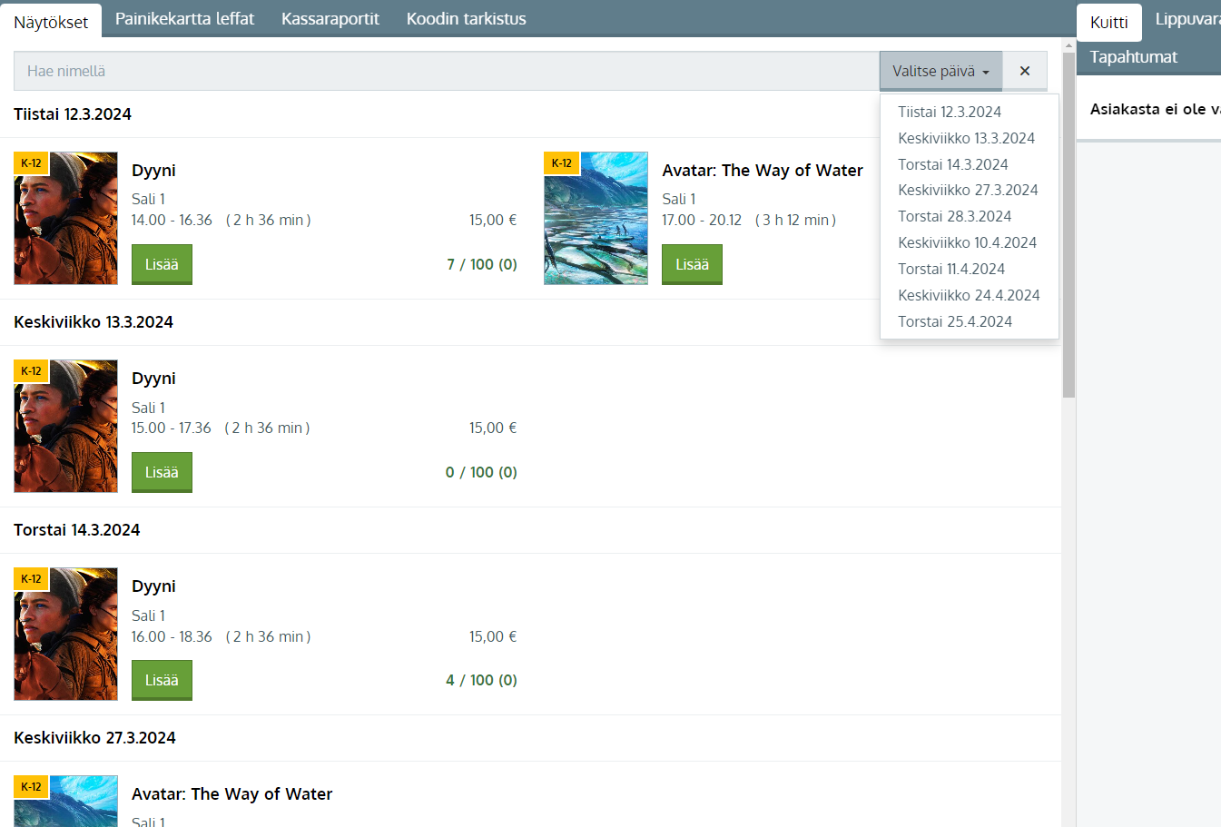Haluatko kassalle esille vain tiettyjen salien näytökset?