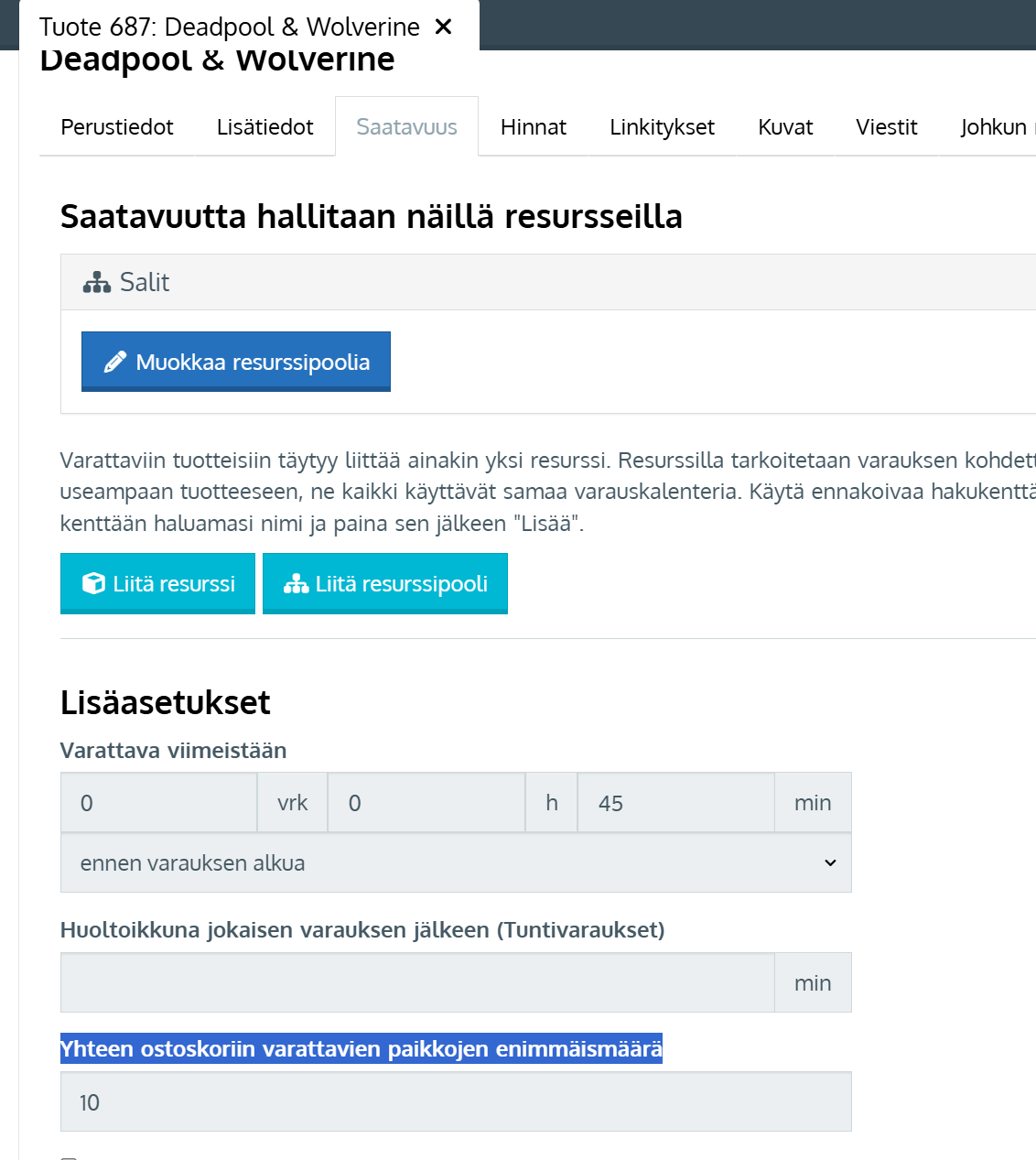 - Syötä haluamasi määrä Yhteen ostoskoriin varattavien paikkojen enimmäismäärä -kohtaan