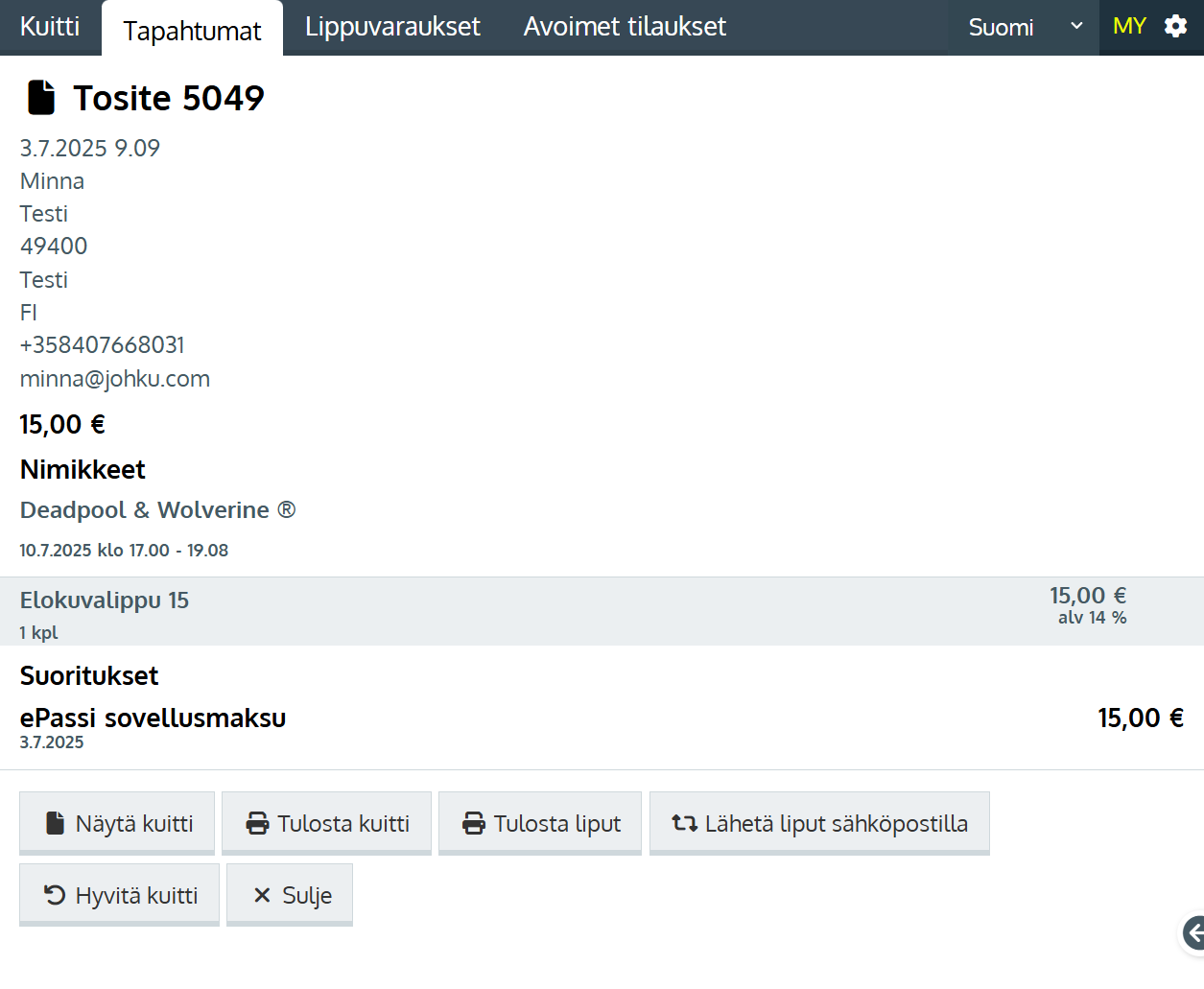 Sovelluksessa tehtyjen etumaksujen vastaanottaminen elokuvateatterissa