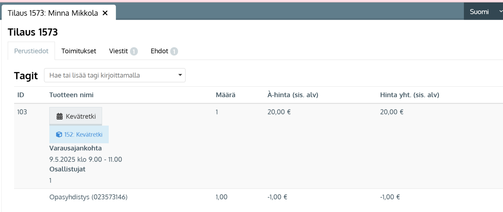- Huomioi että jos tuotteillasi on lippuhinnoittelu, rajaukseen tarvitaan tuoteryhä, joka sisältää nimenomaan liput eli Lippu-tyypin tuotteet
