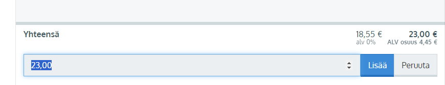 - Vahvista summa ja klikkaa Lisää. Jos muutat summan pienemmäksi kuin koko yhteissumma, niin loppumaksulle täytyy valita toinen maksutapa (tai käteinen uudelleen)