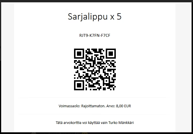 - Sähköpostitse lähetettävässä arvokortissa kooditietojen alapuolella