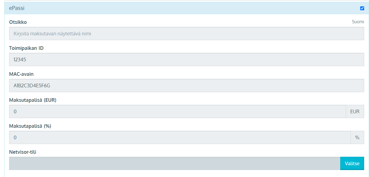 - Jos Johku-kauppasi on integroitu Netvisoriin, valitse ePassi-maksutavalle Netvisor-tili valikosta