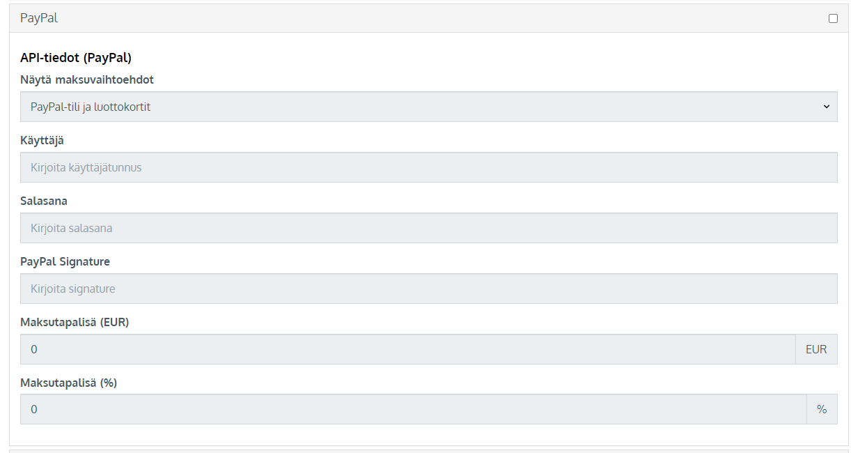 - Klikkaa PayPal-otsikkoa niin saat asetukset auki