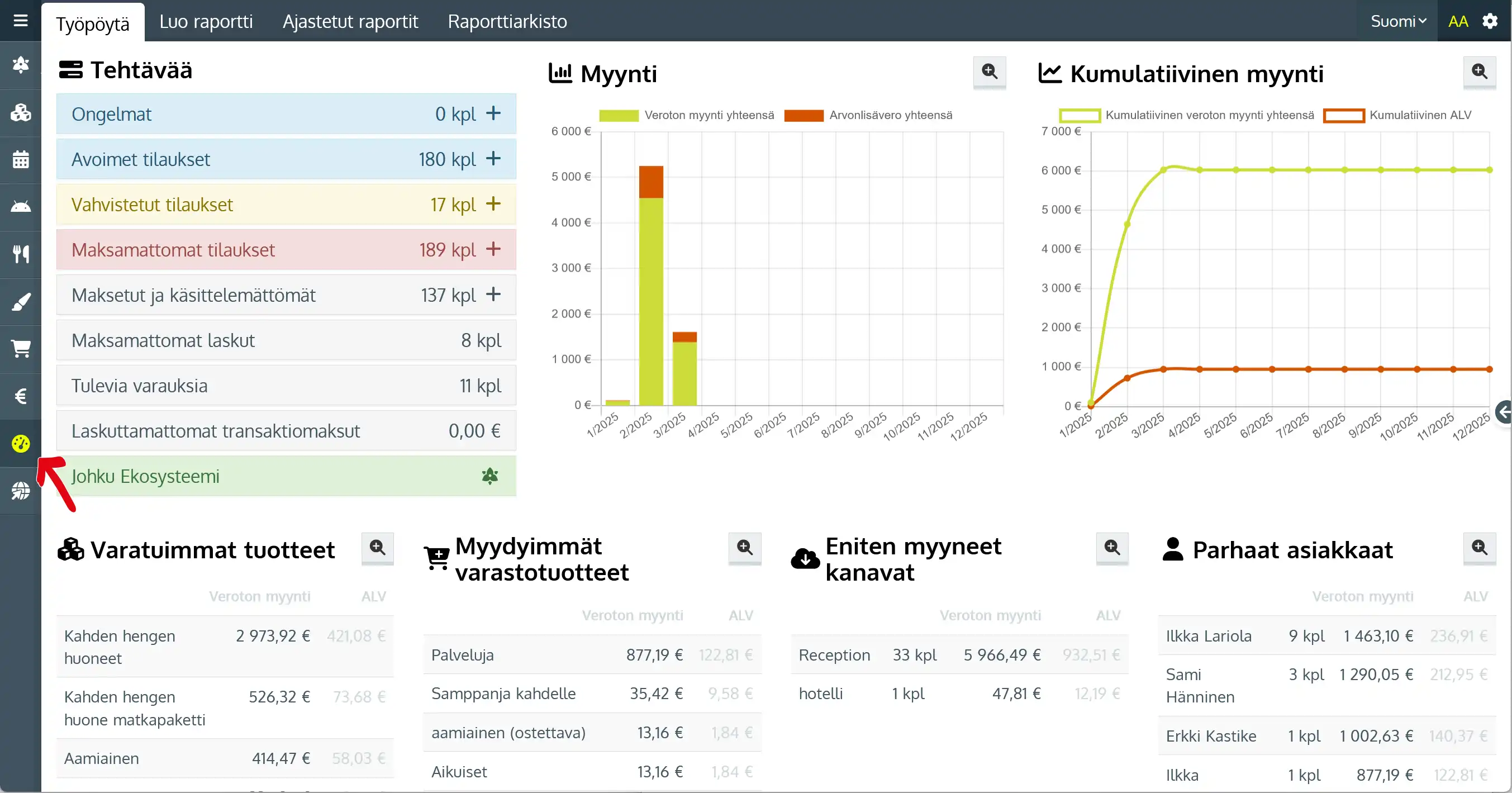 Työpöydällä seuraat tehtäviä ja myynnin kehitystä. - Luo raportti