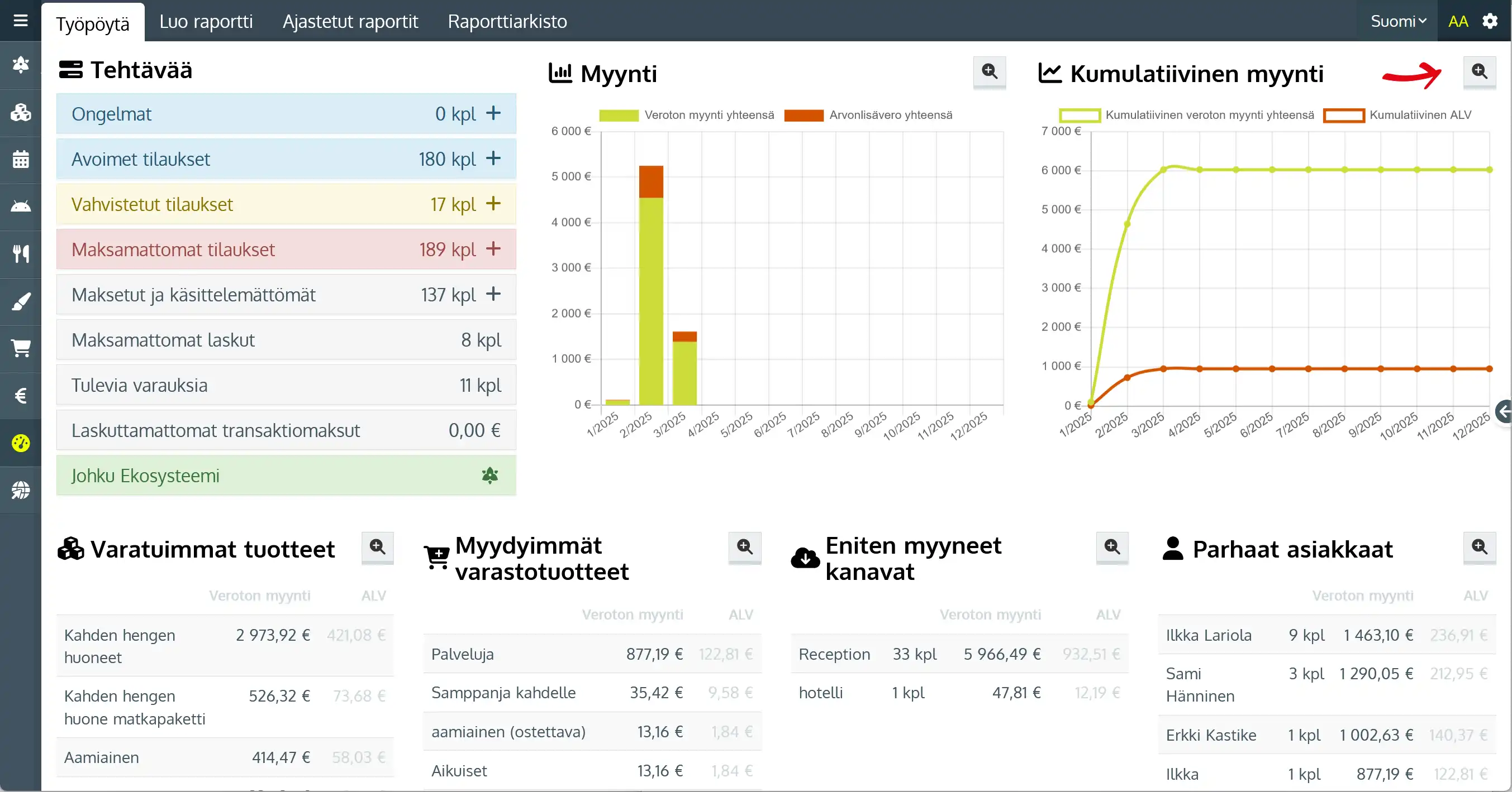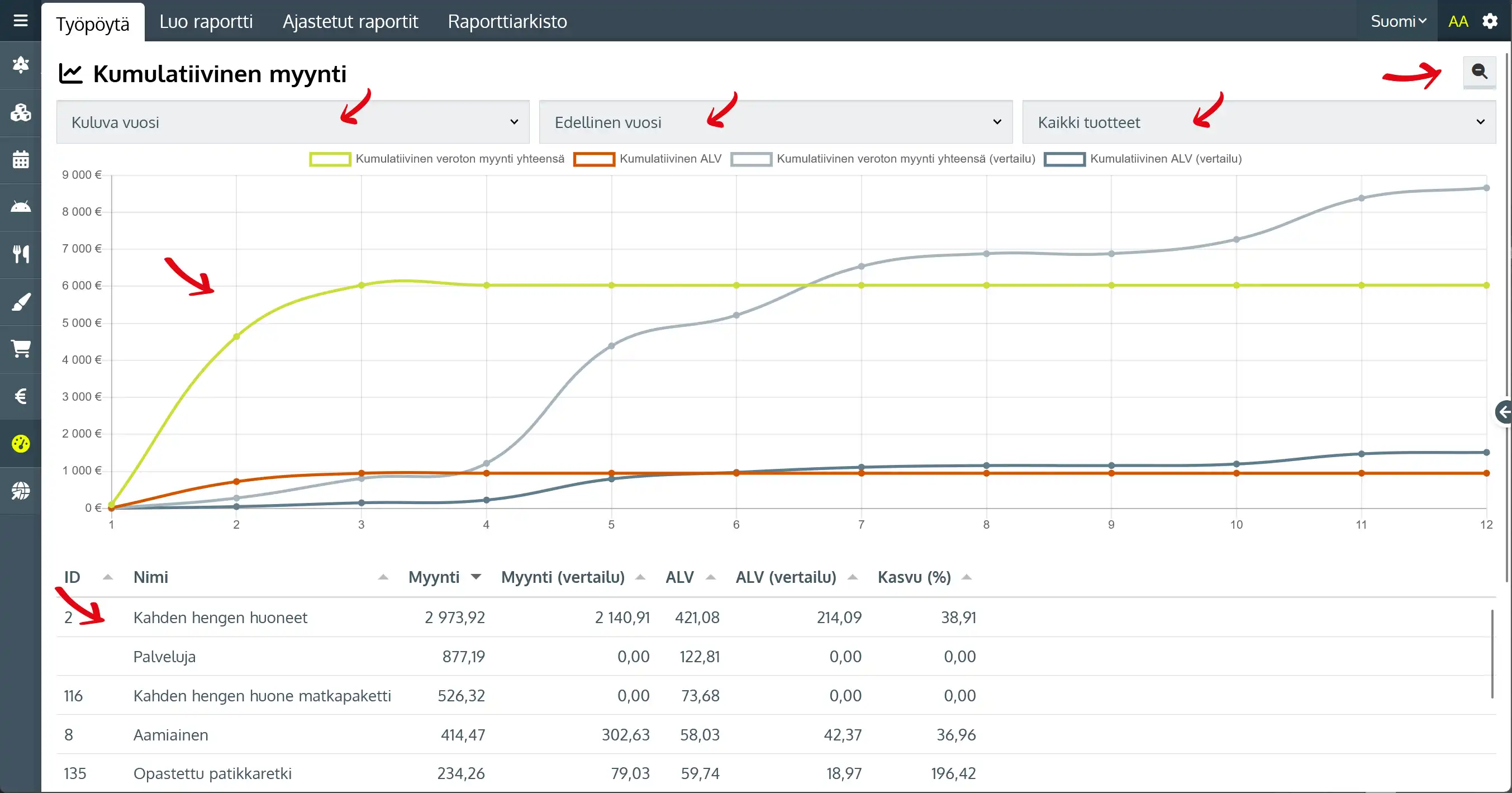 Kumulatiivisen myynnin vertailu edellisiin kausiin