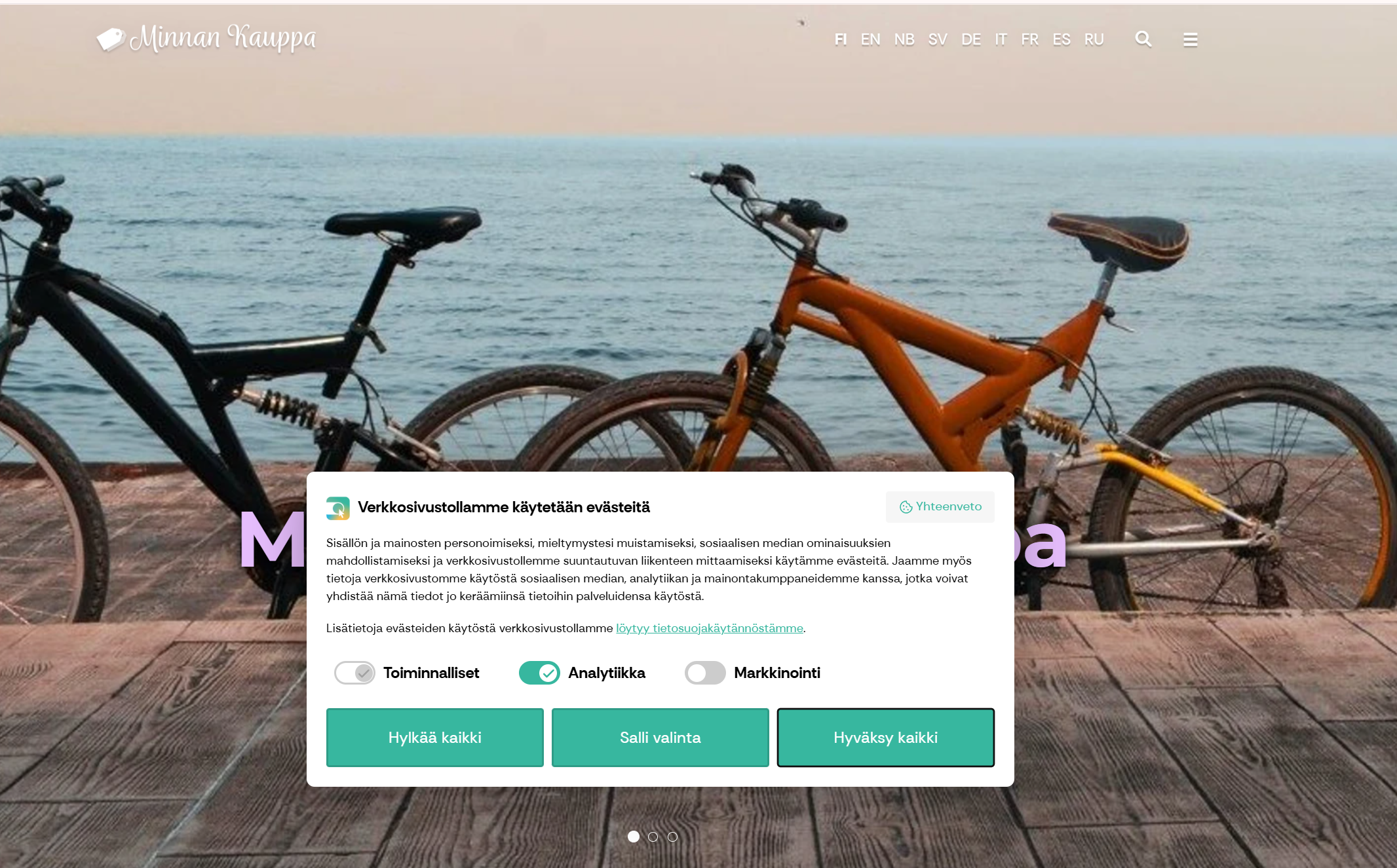 - Mene Johkussa kauppapaikan asetuksiin Evästeiden hallinta -sivulle