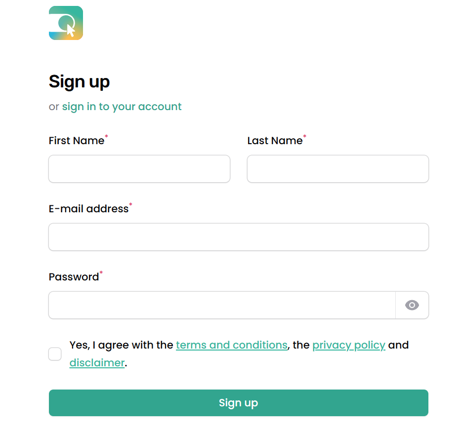 - Klikkaa Sign up