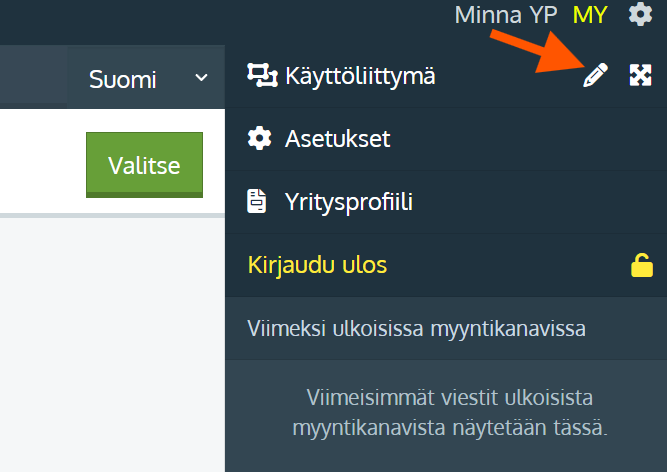 - Klikkaa sivun oikealta yläkulmasta rataskuvaketta