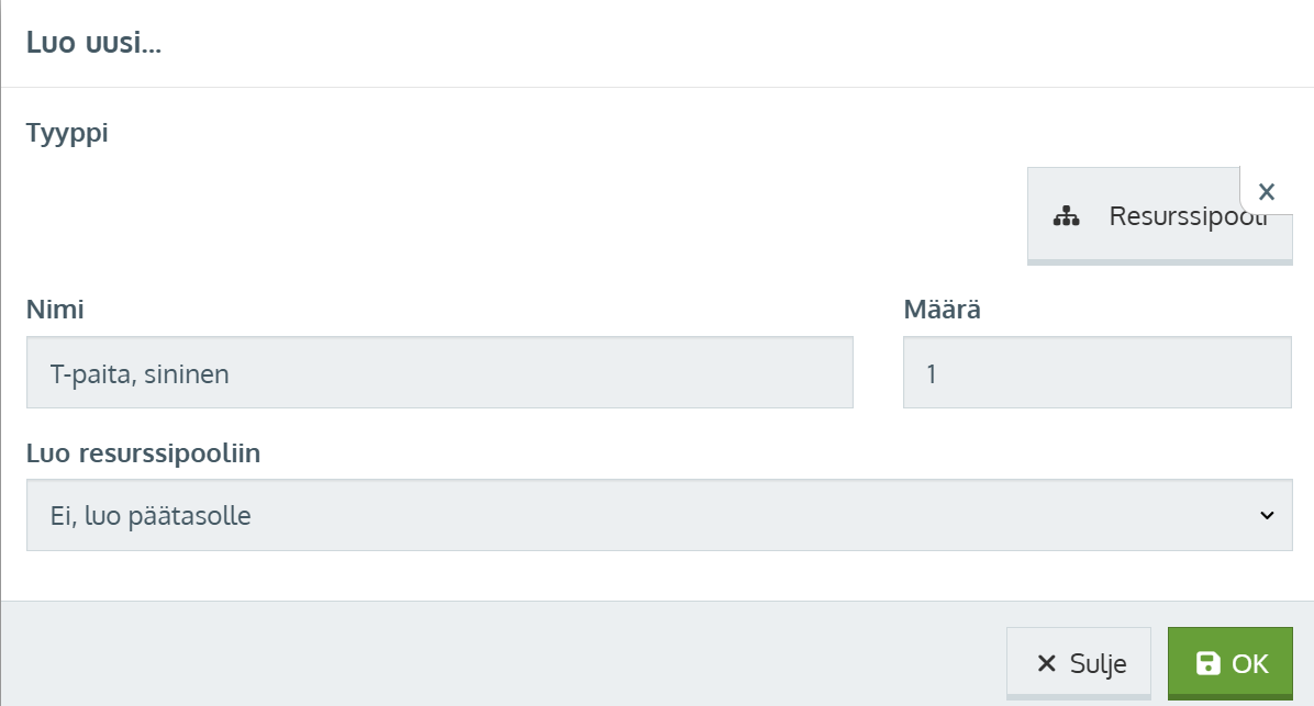 - Anna resurssipoolille kuvaava nimi sen mukaan millaisia variaatioita siihen tullaan luomaan