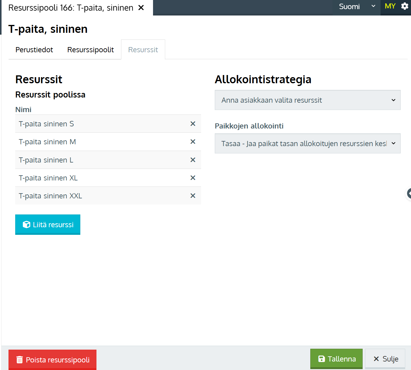 - Tallenna resurssipooli