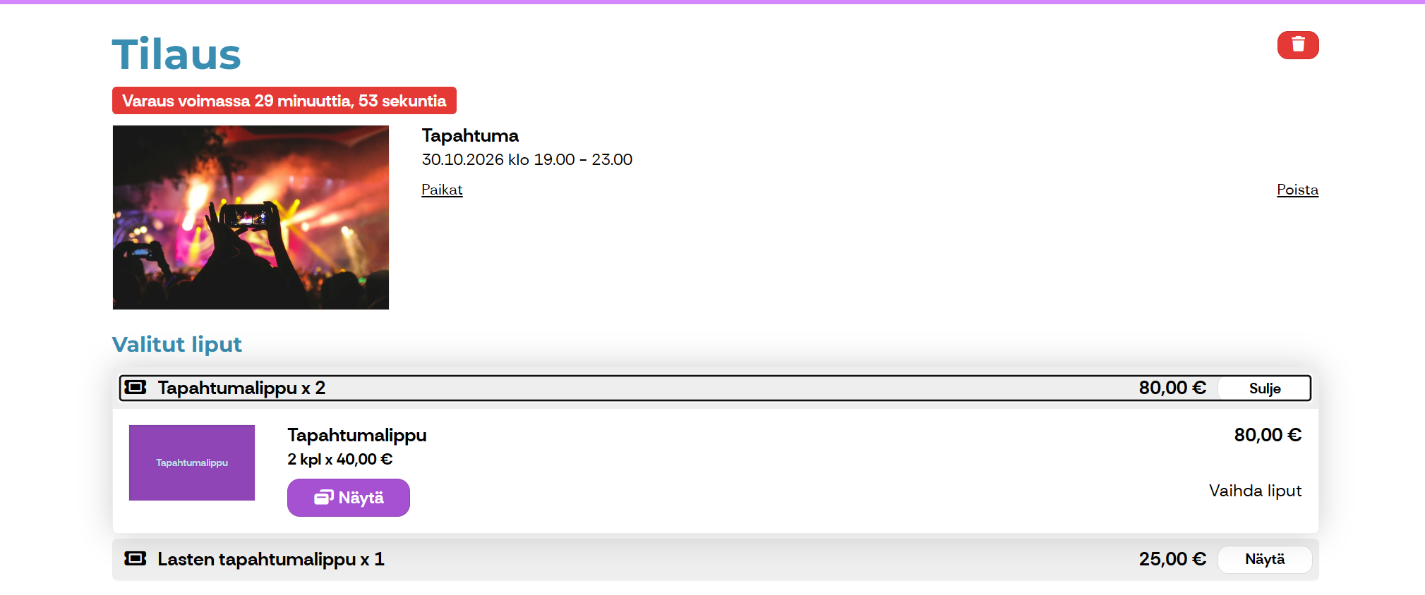 Yleiskatsaus tapahtuman lipunmyyntiin verkkokaupassa