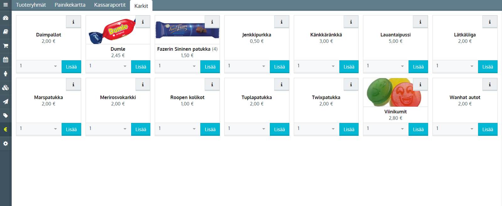 - Jos valitsit tuotteiden tuonnin tiettyyn tuoteryhmään ja ko. tuoteryhmä on kassassa käytössä Tuotelista- tai Tuoteryhmälista -komponentin kautta, Excelistä tuodut tuotteet tulevat suoraan kassaan esille ja myyntiin